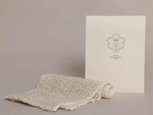 「キビソ」は蚕の繭が外敵や環境の変化から守る重要な役割を担った最も外側の糸のこと。この「キビソ」にたっぷり含まれている絹たんぱく質「セリシン」は保湿性に優れ、活性酸素の働きを抑える効果や紫外線を防ぐ効果があるといわれています。お肌をしっとりと洗い上げ、美しい玉のような肌をつくる浴用タオルです...